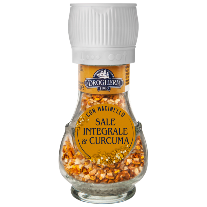Il Sale Marino Integrale, ottenuto senza metodi di raffinazione chimica, incontra il gusto amarognolo e muschiato, leggermente pungente, della Curcuma. Rispetto al tradizionale sale da cucina, il Sale Marino Integrale vanta minori concentrazioni di cloruro di sodio e contiene una maggiore quantità di microelementi. Sale Integrale & Curcuma è un’accoppiata perfetta da usare su secondi di carne oppure per preparare la marinatura per le verdure da grigliare.
